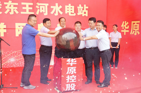 7月28日上午11點,華原控股有限公司在黃陵東王河水電站舉行正式并網(wǎng)發(fā)電慶典儀式。慶典現(xiàn)場,黃陵縣縣委常委、政法委白建平書記,黃陵縣水務局張峰局長,黃陵縣田莊鎮(zhèn)梁博黨委書記,黃陵縣田莊鎮(zhèn)趙文杰鎮(zhèn)長,華原控股有限公司董事長,華原控股有限公司魏廣林總經(jīng)理共同啟動水晶球,共同見證東王河水電站并網(wǎng)發(fā)電。