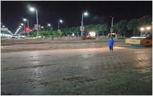 西環(huán)路平交口道路自建設(shè)以來,項(xiàng)目部克服時間緊、任務(wù)重、溝通難的實(shí)際困難,合理安排施工順序和時間,嚴(yán)格按照相關(guān)道路施工標(biāo)準(zhǔn)施工;廣大筑路員工冒著酷暑,加班加點(diǎn),熱火朝天地奮戰(zhàn)在施工現(xiàn)場;為了保證施工安全,防止塵土和噪音污染,項(xiàng)目部在整個路段都設(shè)置了圍擋,利用大型挖機(jī)對路面進(jìn)行開挖,人頭攢動,機(jī)聲隆隆,一片繁忙,為早日交工提供了充分保障。(徐堯)